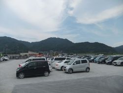 ほとんどの人は車で来るようです。遠くの方にバスが。