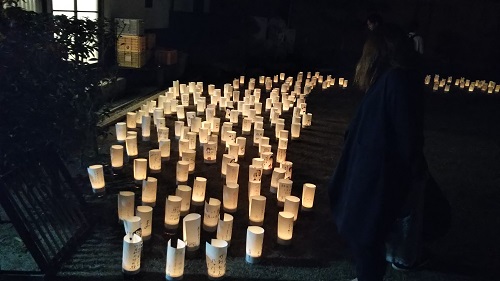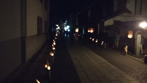 このように、道路脇に一定の間隔で竹灯籠が置かれています。