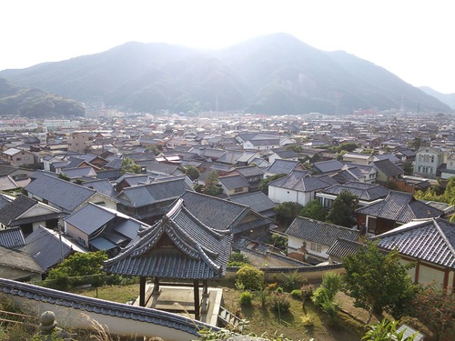 地上からは見えない瓦葺きの群れ。まるで海のようです。