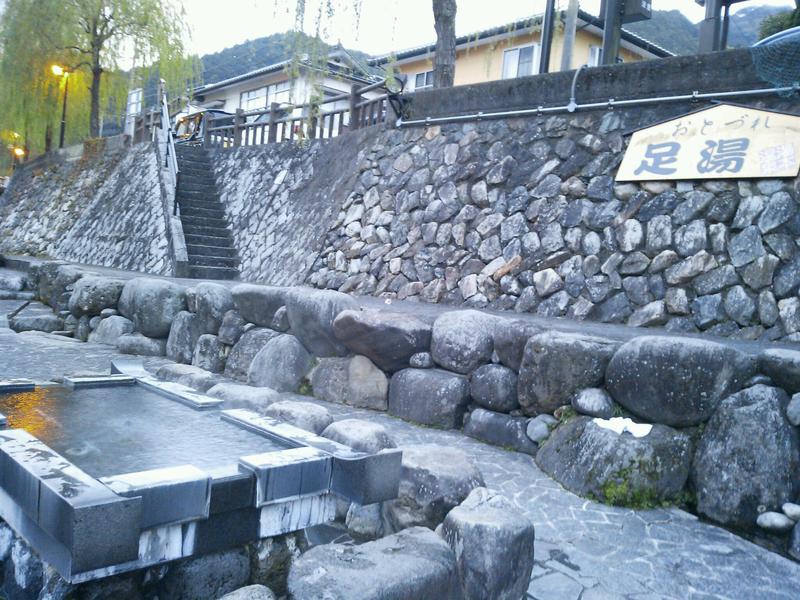夕食前にホテルの周りを散歩して、足湯しました。