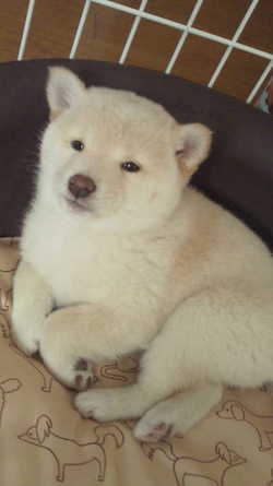 白柴の「雪」です。現在生後2ヶ月と10日程。まだほぼほぼ赤ん坊のため