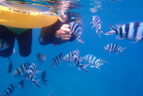 最初は少し怖がっていた子供達もすぐに楽しんでいて、綺麗な海にたくさんの魚が泳いでいる