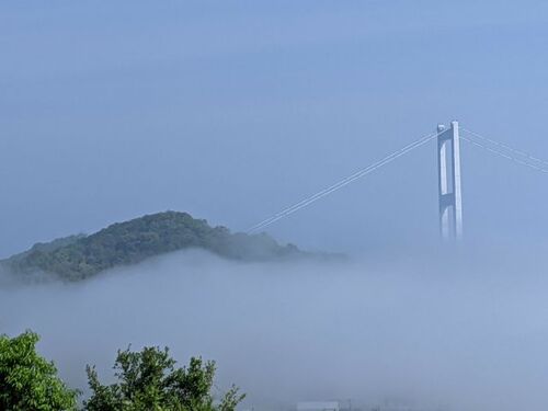 この時期の瀬戸内海は、気温と海温の寒暖差で霧が発生し、