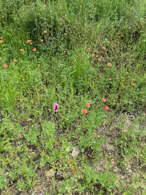 オレンジの花はナガミヒナゲシ。