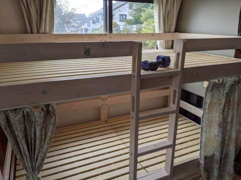 上の二段ベッドは、今まで次女が使っていたのですが、二段ベッドは子供っぽいからNoThankYouとのこと。
